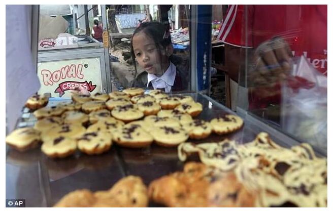 △ 來自dailymail.co.uk 的圖片顯示一名女學生在上學前盯著傳統煎餅