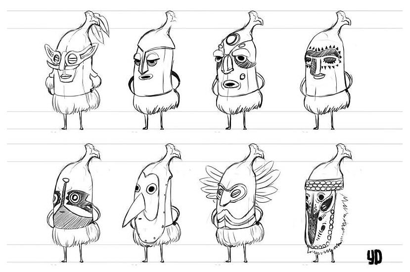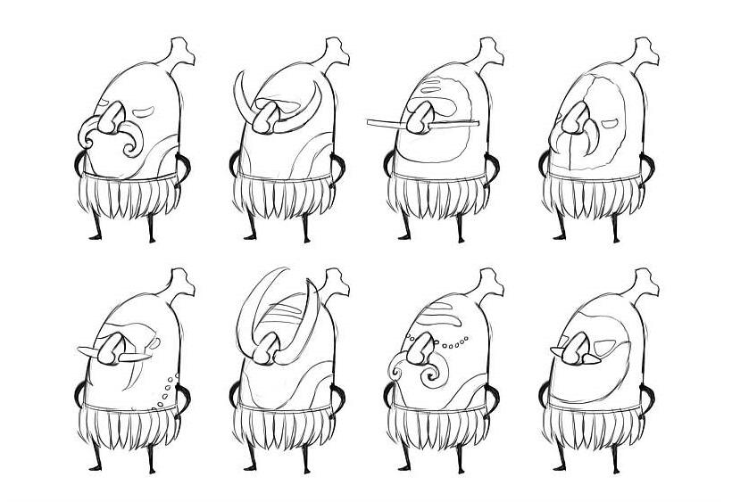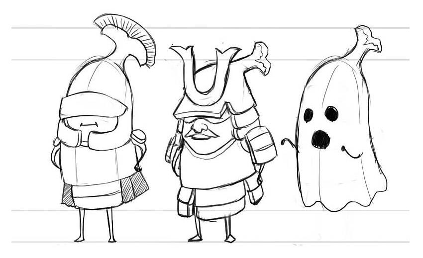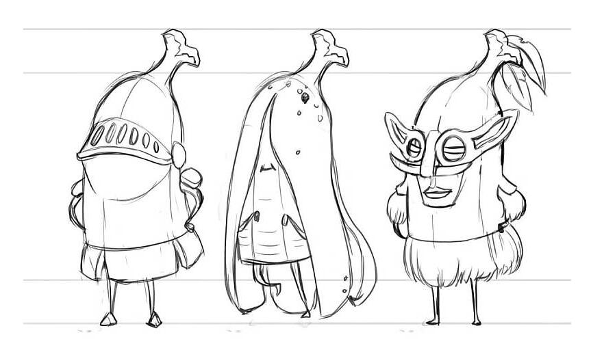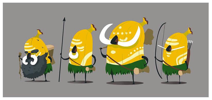 于是,我們開始為故事勾勒出人物形象,我們在想,這些角色應該像是可愛的孩子,但同時也還是要有香蕉的模樣。所以我們開始嘗試畫幾個形象。