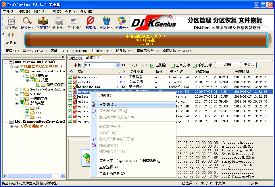 當所有要恢復的文件都復制出來后。可以通過“分區 - 重新加載當前分區”菜單項釋放當前分區在內存中的暫存數據,并從磁盤加載當前分區,顯示分區的當前狀態。