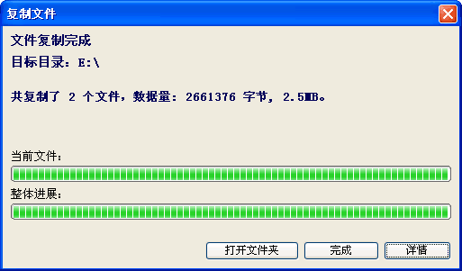 點擊完成按鈕,關閉文件復制對話框,程序自動清除已復制的文件的選擇狀態。以準備選擇其它文件。