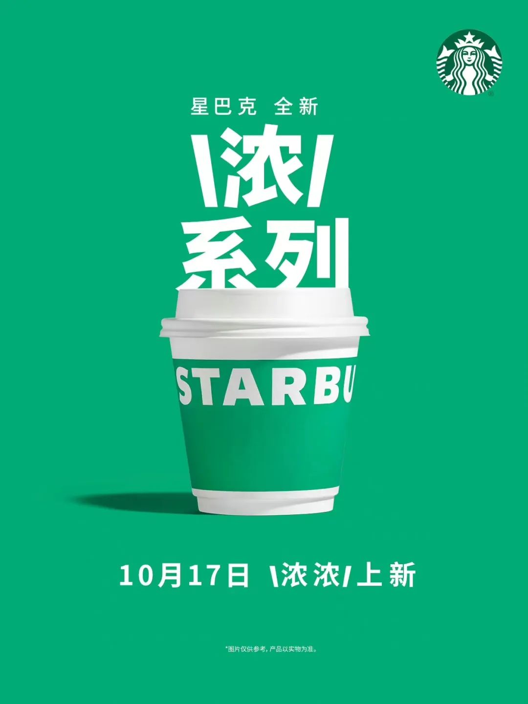 10月17日,星巴克中國推出\濃/系列咖啡飲品,專屬杯型全球首發,定價每杯33元,規格259mL/杯。