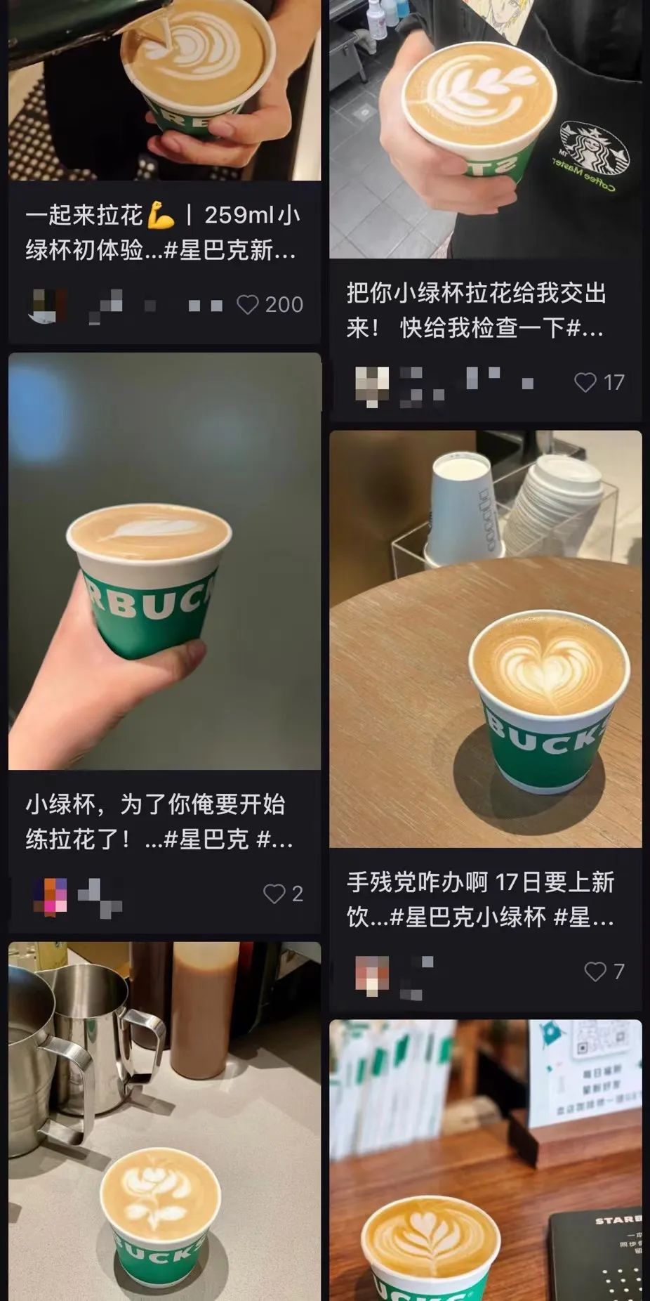 當消費者還在期待“小綠杯”的口感,星巴克的伙伴們已經開始卷起了拉花技術。不少咖啡師在社交平臺分享拿著新到的小奶缸,為\濃/系列努力學習拉花的故事。從“完美復制廣告海報”,到畫出小老虎、小天鵝等創新圖案,星巴克的伙伴們也為消費者體驗“小綠杯”帶來了更多驚喜。