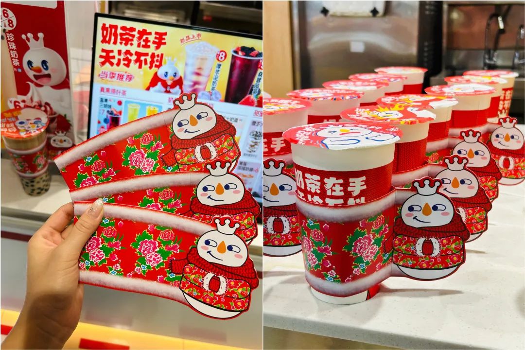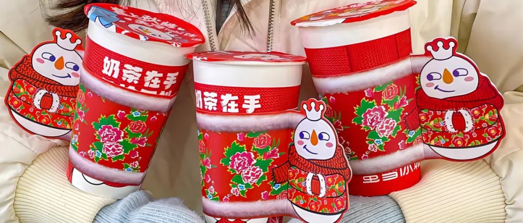最近,茶飲圈正在上演一場“杯子換裝秀”:前有雪王穿上“土潮”的東北特色花棉襖;后有滬上阿姨換上國風馬面裙;還有霸王茶姬,立冬一到就戴上了圍脖杯套……