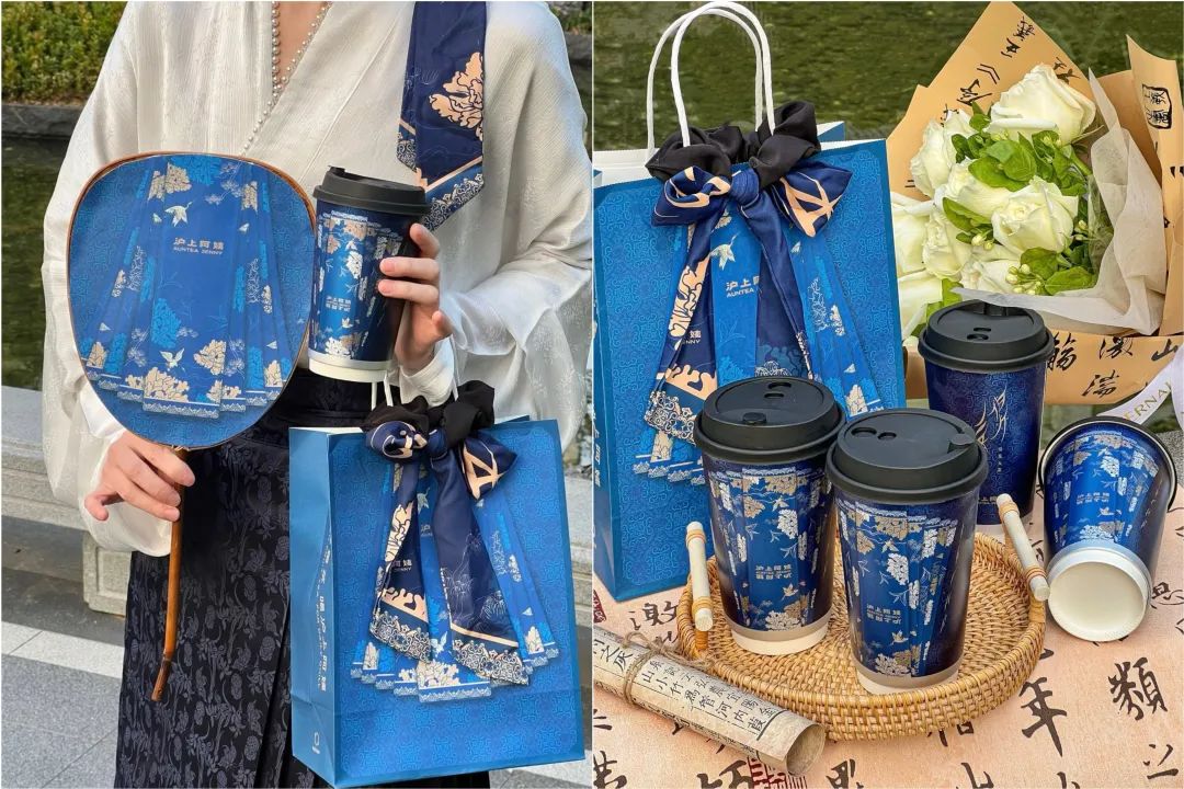 11月17日,滬上阿姨上新了東方輕乳花茶系列,杯體設計以馬面裙為靈感,攜手非遺文化“江永女書”凸顯特色,黛藍色的主色調直接將古風氛圍拉滿,很多網友直呼“我的中式審美血脈在覺醒”。