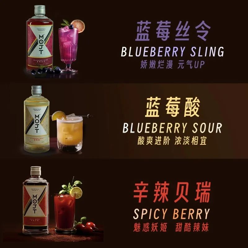 這款聯名系列從經典雞尾酒血腥瑪麗、威士忌酸、新加坡司令中汲取靈感,酒體選用藍莓蒸餾酒、貴州紅酸湯、貴州藍莓汁,以貴州黔東南當地果汁作為配料,并加入少許茅臺酒、漢醬酒調香調味。