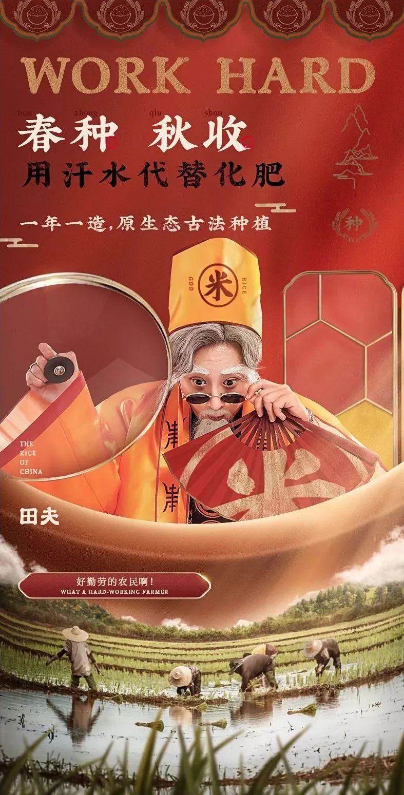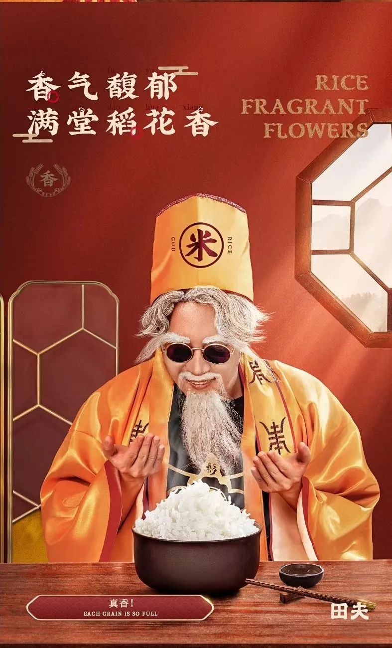 比如某大米品牌,其定位叫做神仙米,所以設計師用一個“神仙”的角色來貫穿整個詳情頁,塑造出神仙都經不住該大米誘惑的感覺,通過這種方式也有效與其他品牌建立了區隔。