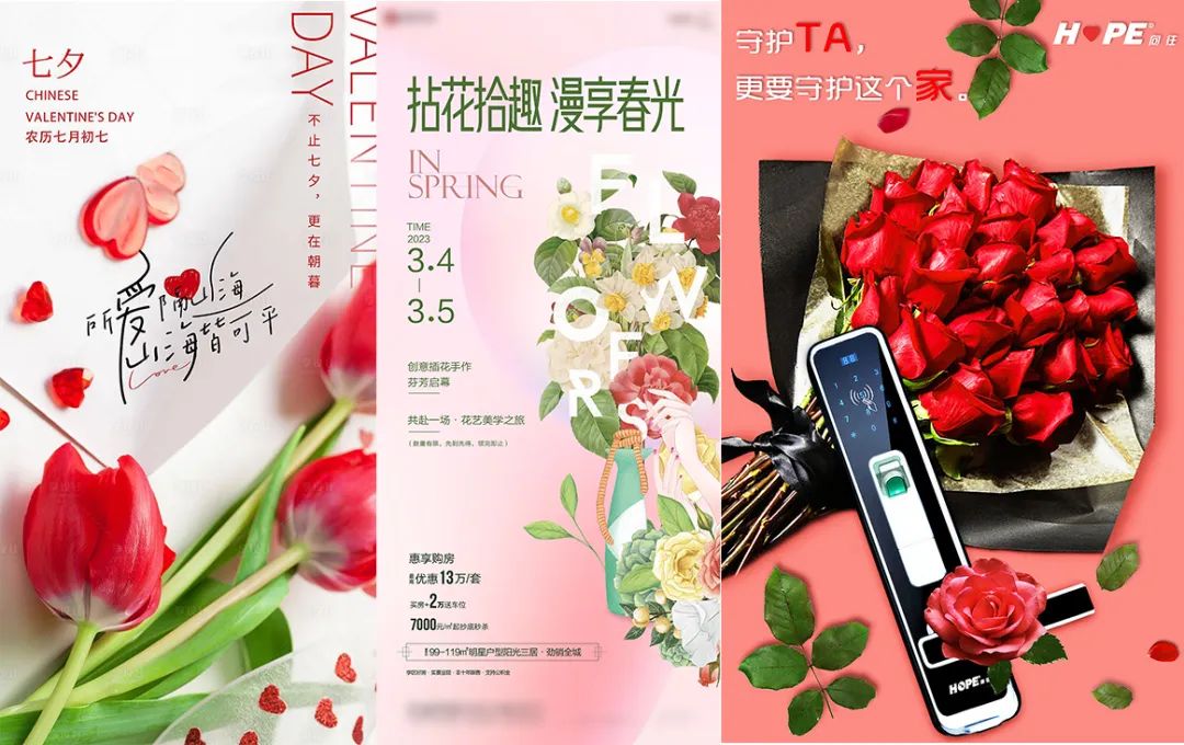 舉個例子,我們要給某鮮花連鎖店在七夕節做一些廣告,普通設計師可能立馬就會覺得客戶就是想做幾張海報,所以首先就會向客戶索要花店名稱、鮮花圖片、標題、鮮花介紹的文案、促銷信息等,他來負責做排版、圖形創意之類的工作。