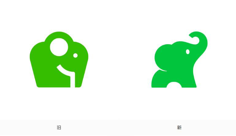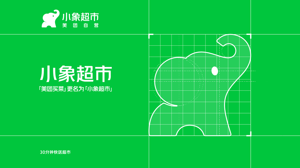 小象超市的新LOGO保留了綠色小象的元素,但在設計上有了明顯的改變。原先的象低著頭,鼻子垂直向下(整體造型其實還是一個菜籃子),而現在的設計則采用了更嚴謹的圓形和網格繪圖法,相比于原來呆滯的造型,新的小象昂首挺胸,翹起了長長的鼻子。俏皮可愛,生動有趣。