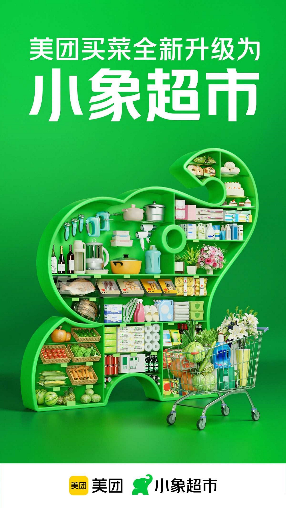 美團買菜于2019年上線,是美團旗下的自營零售品牌,通過在社區設立的集存儲、分揀、配送為一體的便民服務站,為社區居民提供生鮮食雜日用及配送服務。12月1日,美團買菜升級為全新品牌「小象超市」并同步啟用全新品牌LOGO。此舉也意味著美團買菜將突破「生鮮」定位,開始向日用清潔、個護美妝、酒水飲料等全品類邁進。