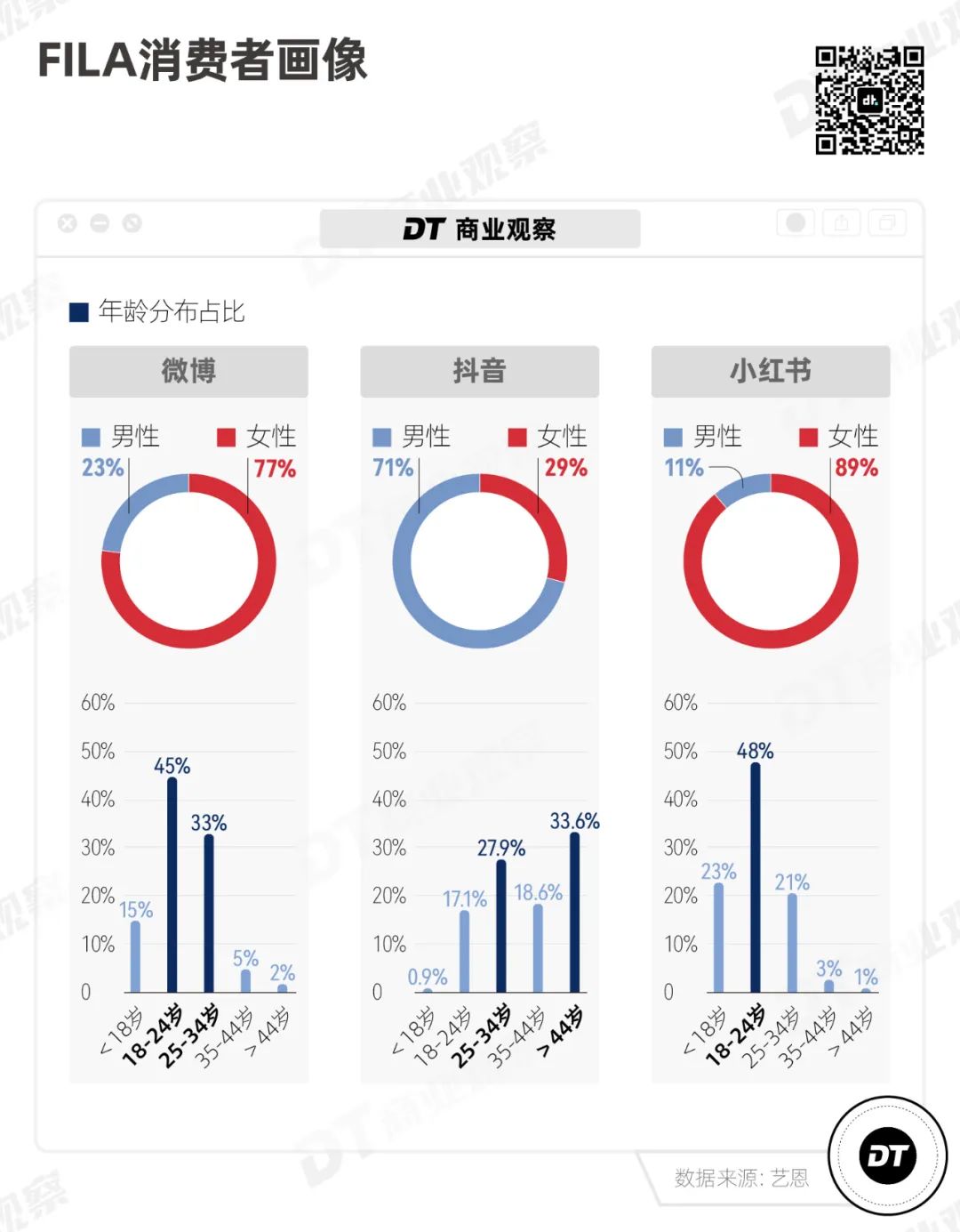從不同平臺的人群畫像來看, 18-24、25-34歲的年輕消費人群,正是FILA的主要受眾。