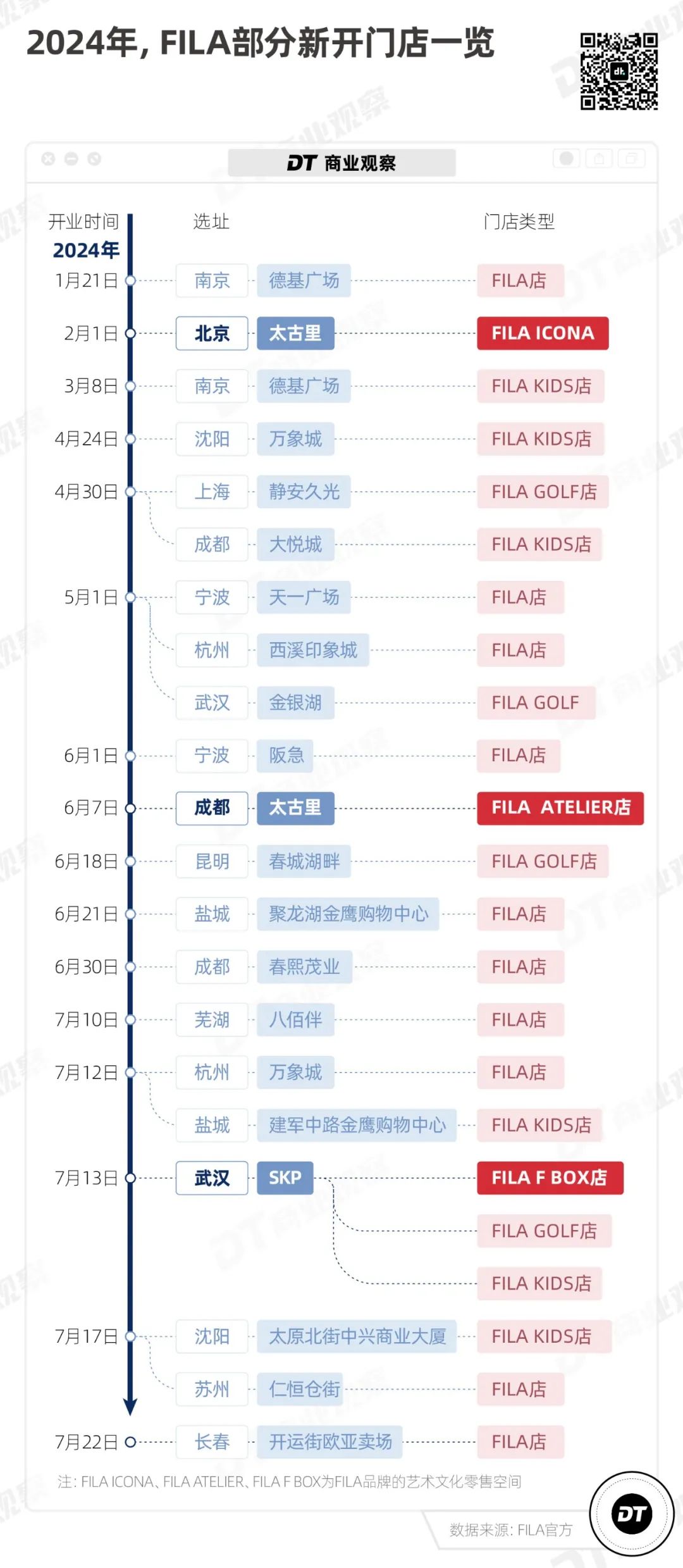 這種在頂級商圈開店的策略,背后是FILA頂級渠道戰略的支持,即在高端核心商圈做渠道布局。
