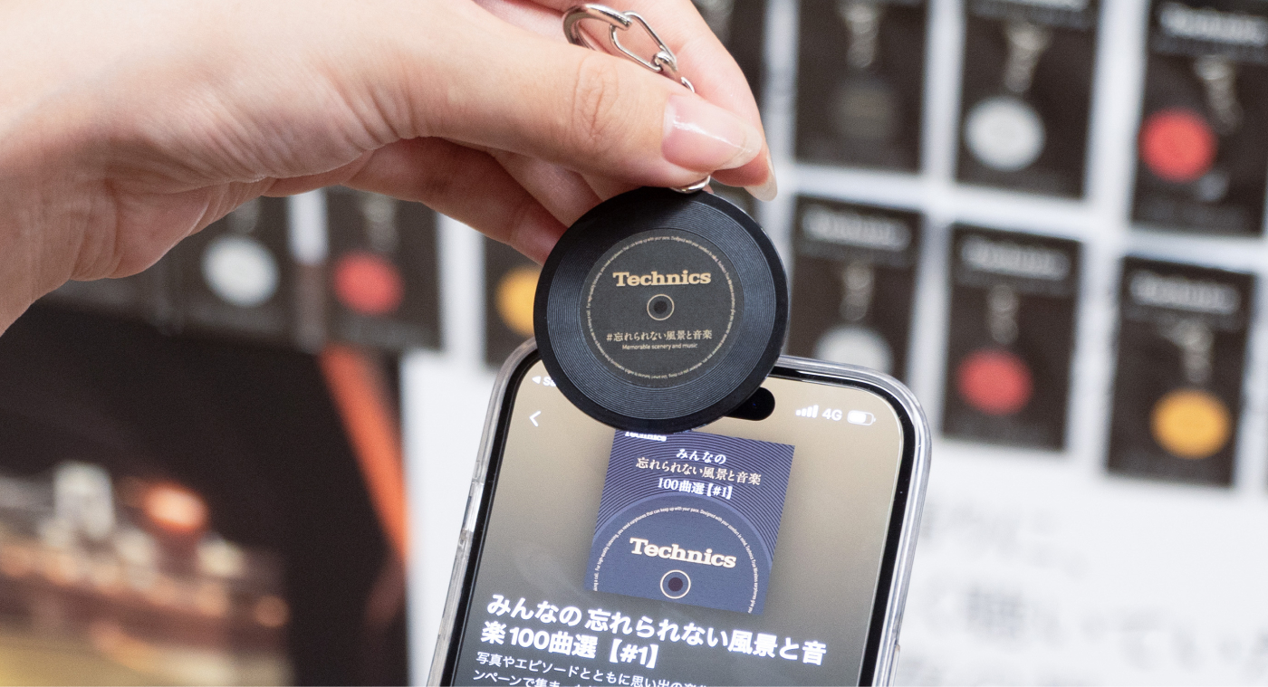 小小一枚鑰匙扣,造型靈感取自Technics的經典唱片。路人可以通過把它放置在手機上,聆聽整理好的列表歌單。當鑰匙扣陸陸續續被取下,音樂背后的故事就會一一露出。