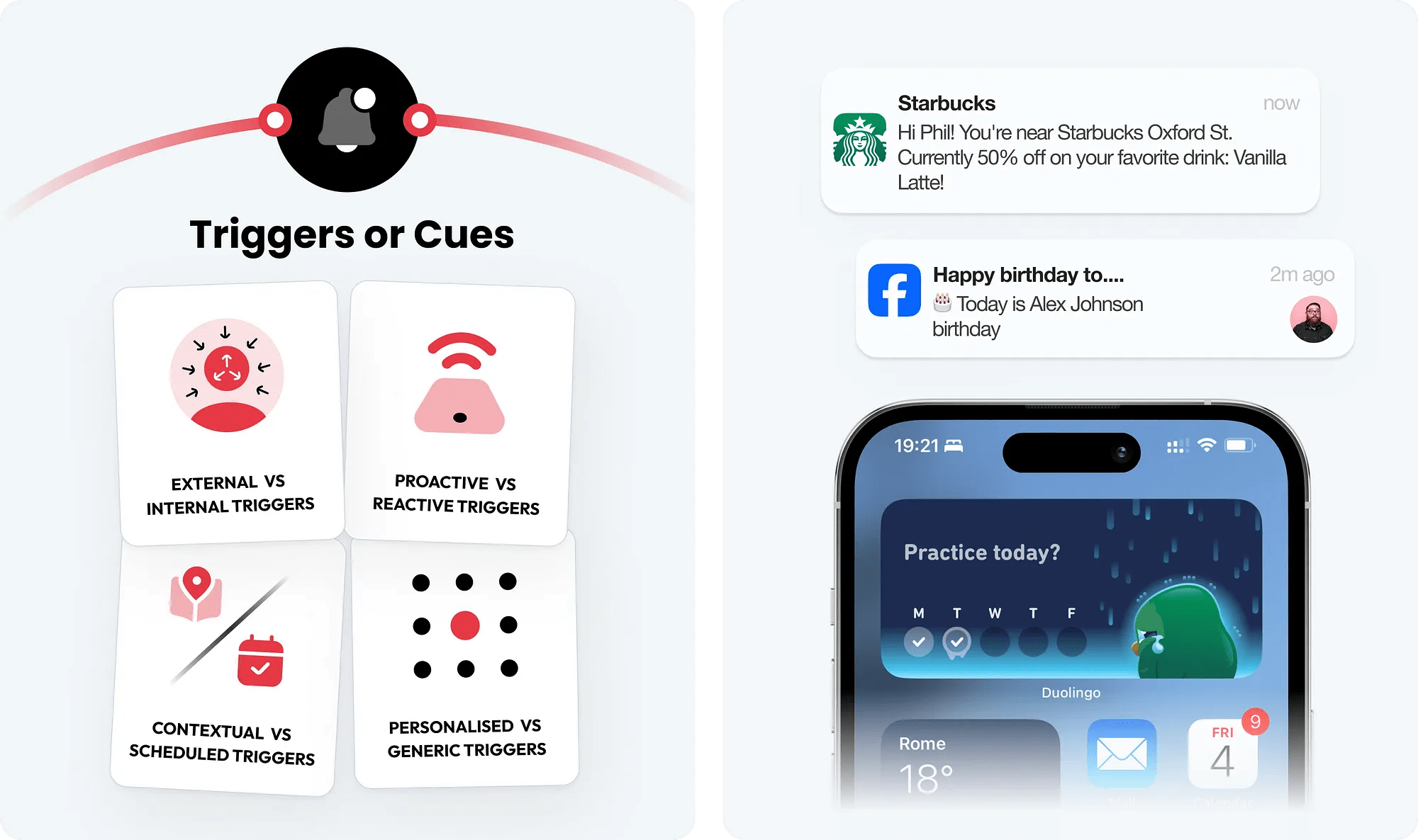 個性化觸發機制比通用觸發機制更有效,因為它們能滿足用戶的特定需求、偏好和習慣。觸發機制應始終提供價值,必須避免發送瑣碎或不必要的通知,以免導致用戶感覺出戲而脫離。