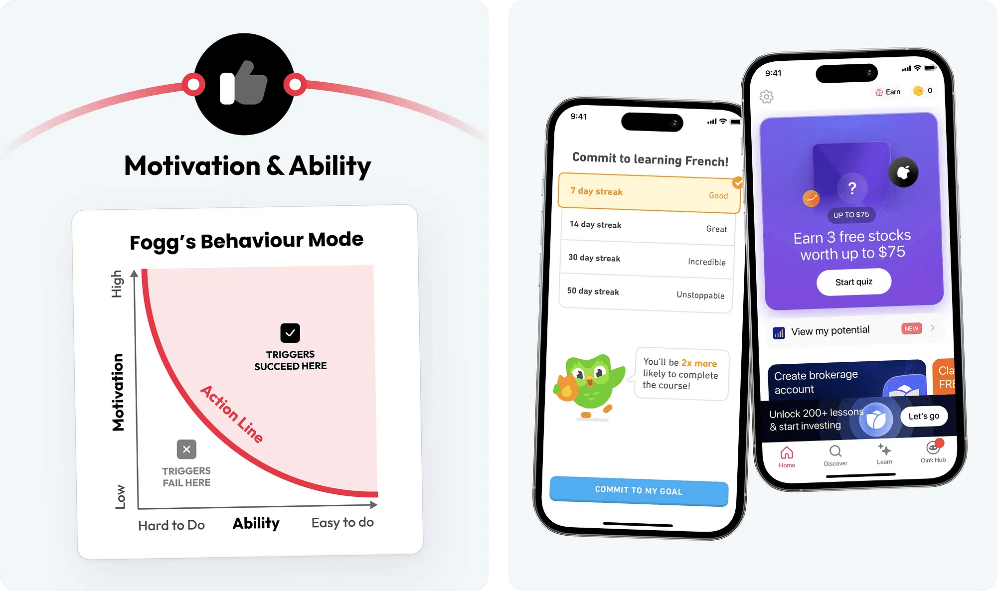 (例如,Duolingo 提示用戶承諾堅持學習,并提供選擇,讓用戶有自主感)