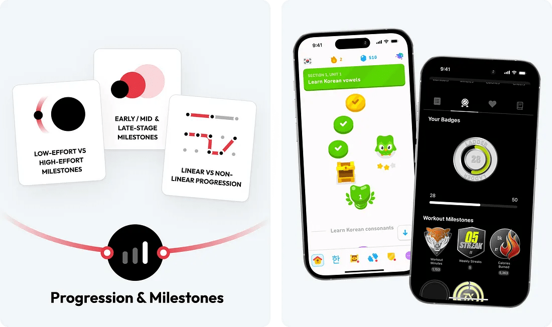 「累進」是指用戶在與產品互動過程中體驗到的持續進步,而里程碑則是標志這種進步的關鍵成就。與提供即時滿足感的短期獎勵不同,累進和里程碑可提供長期滿足感,從而推動用戶持續參與。