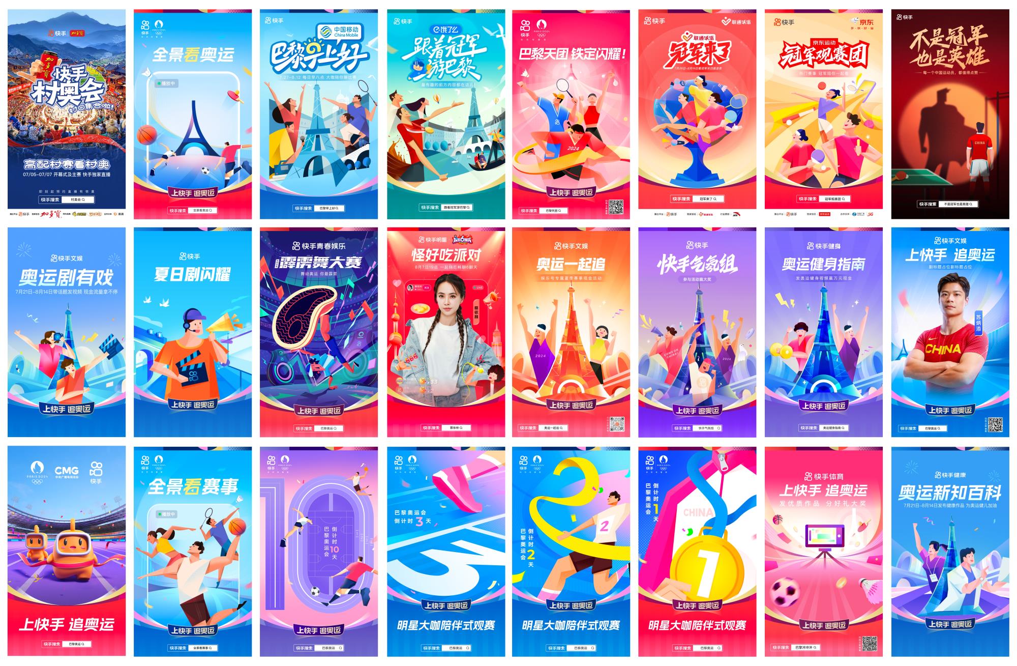 作為設計師的我們,整個奧運期間幫助業務完成了「快手村奧會」、「巴黎早上好」、「冠軍來了」等 24 個內容 IP 及 820 個相關的物料的設計支持,可以說為快手的奧運活動交上了完美的答卷。