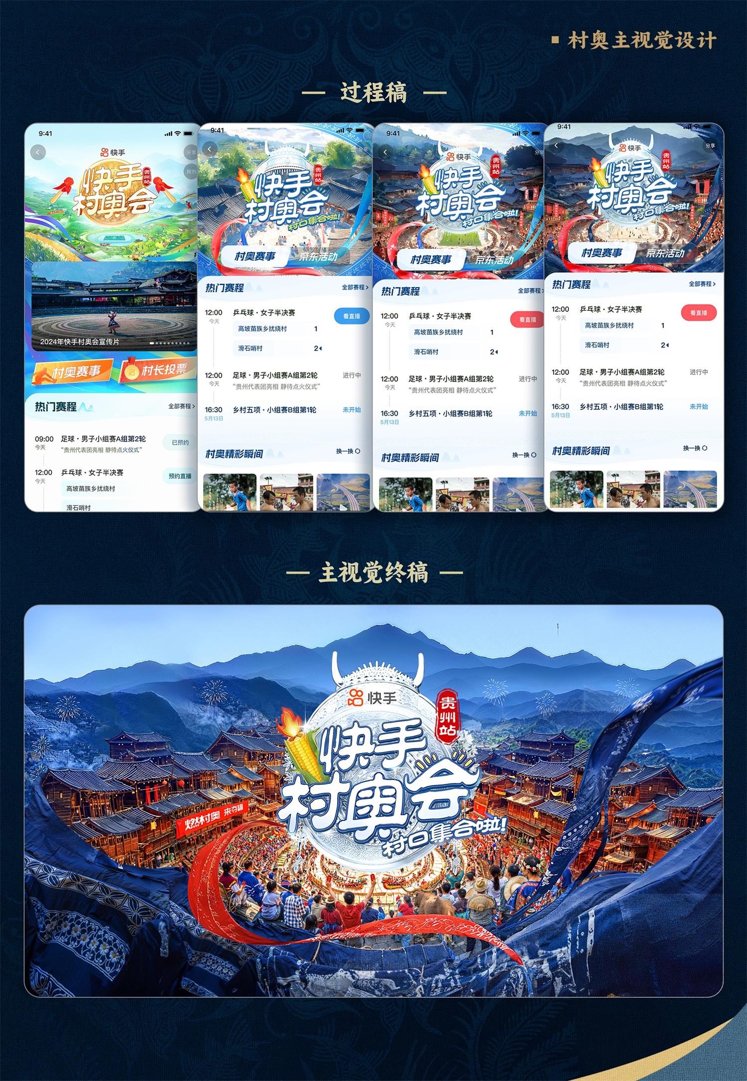 最后,我們就形成了圍繞著內容+用戶的設計創意——苗銀與鑼鼓交融,貴州與奧運共舞。有了設計創意,在具體執行過程中,我們也是不斷嘗試,打磨細節,我們相信,一個好的設計方案,一定是從打磨細節開始的。