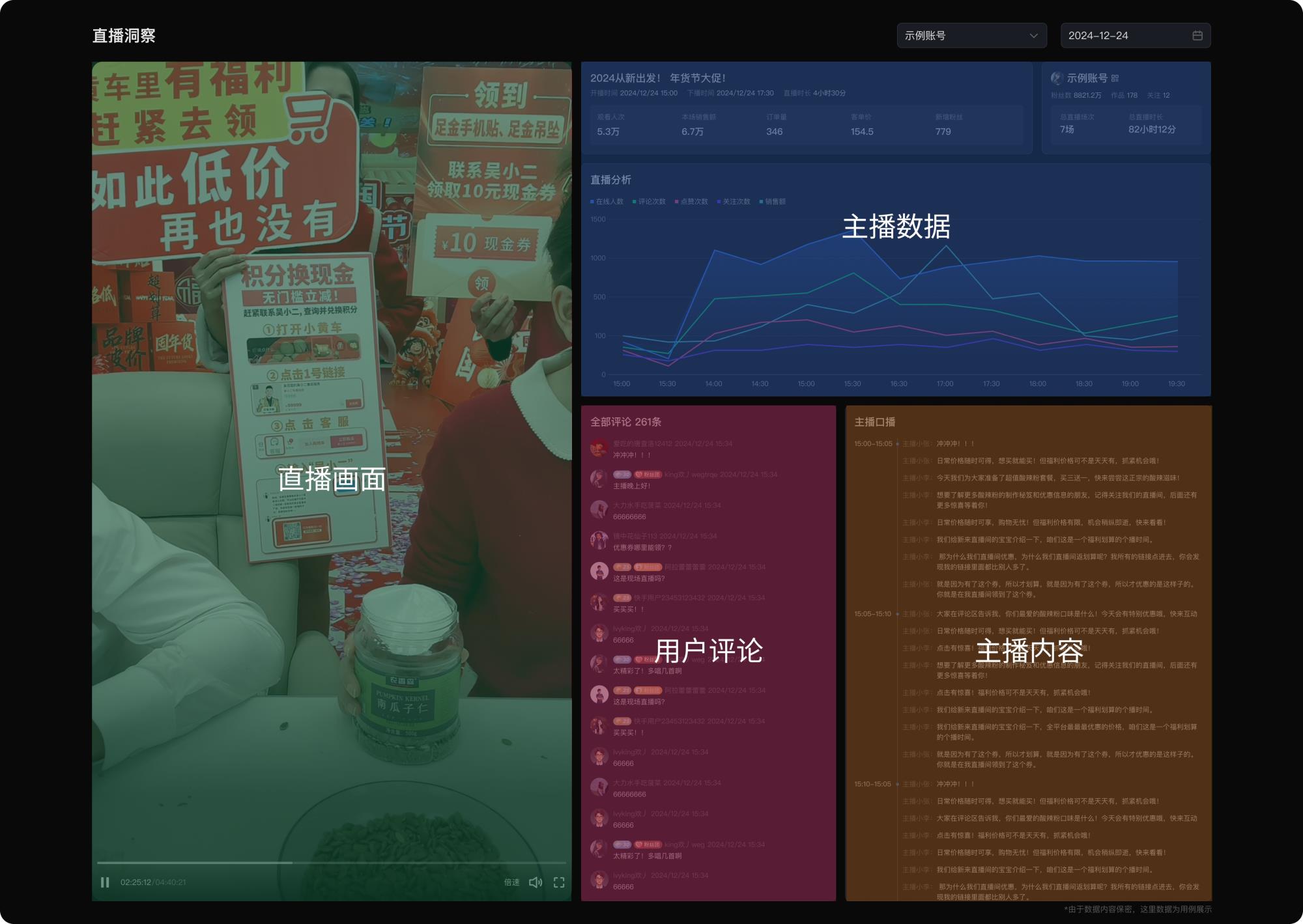 口播內容沒有重點:無法觀測到數據的漲跌時刻主播的口播內容,是否違規,以及峰值時刻如何影響數據。