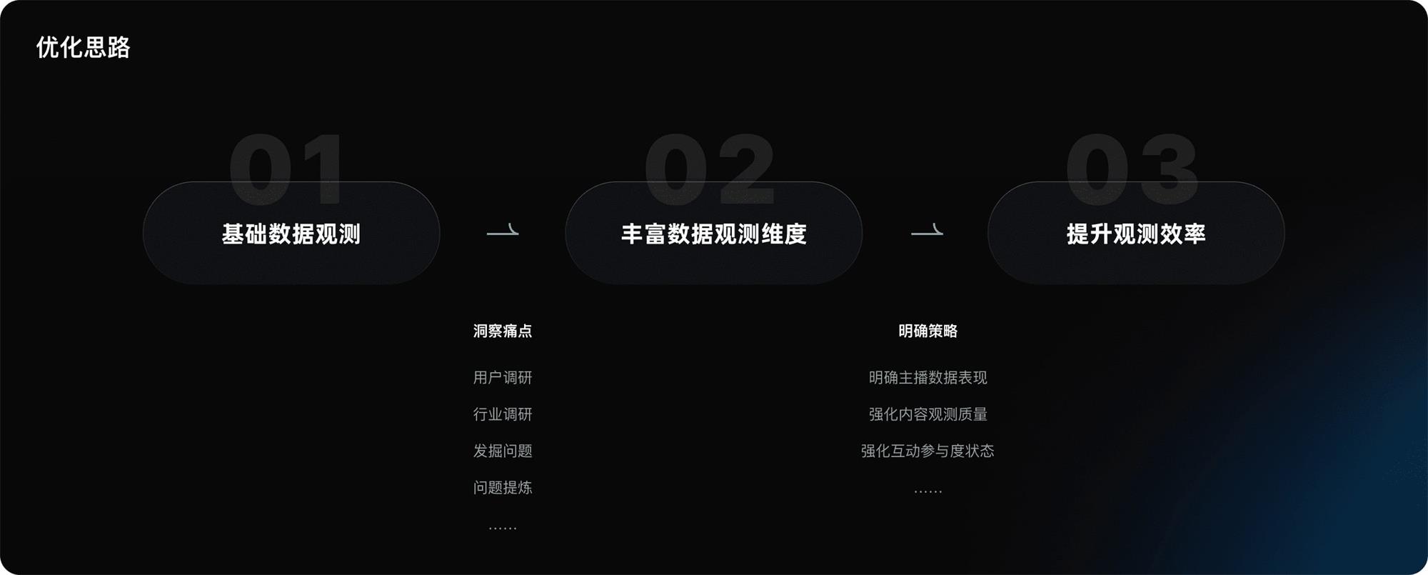 作為體驗設計師,當基礎的數據分析無法滿足需求時,我們需要深入用戶調研,結合運營平臺特性,洞察具體問題并提煉關鍵需求。通過明確主播數據表現、強化內容觀測質量和互動參與度,我們可以豐富數據觀測的維度,制定有效的設計策略,提升使用效率和觀測效率。