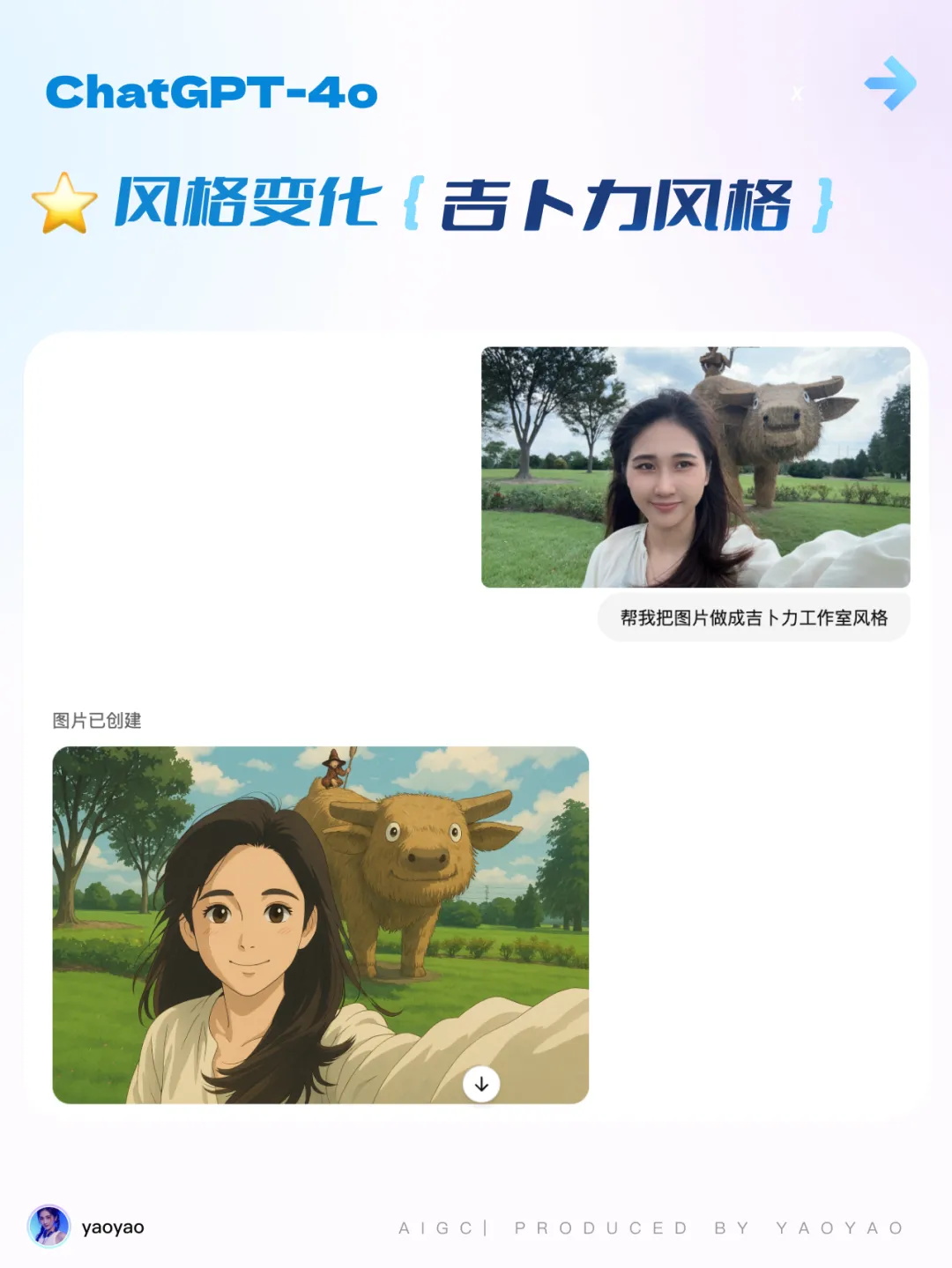 落地應用:可將圖片轉換為吉卜力工作室風、3D 卡通風格、粘土風格、可愛毛絨風格、新暴力主義風格、日本漫畫風格、皮沙爾風格等多種藝術風格。