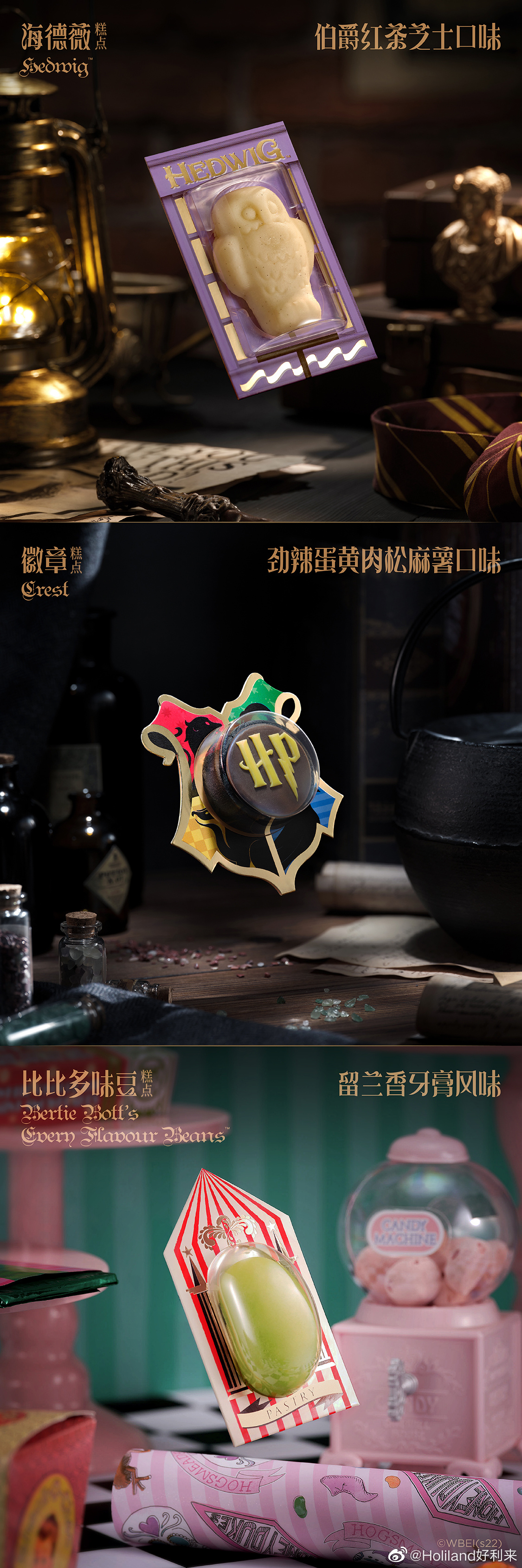 禮盒中均包含六款不同口味的糕點,以哈利波特經典物件為設計原型。除此之外,禮盒中還包括入學通知書、火車票、學院徽章和魔杖等周邊。