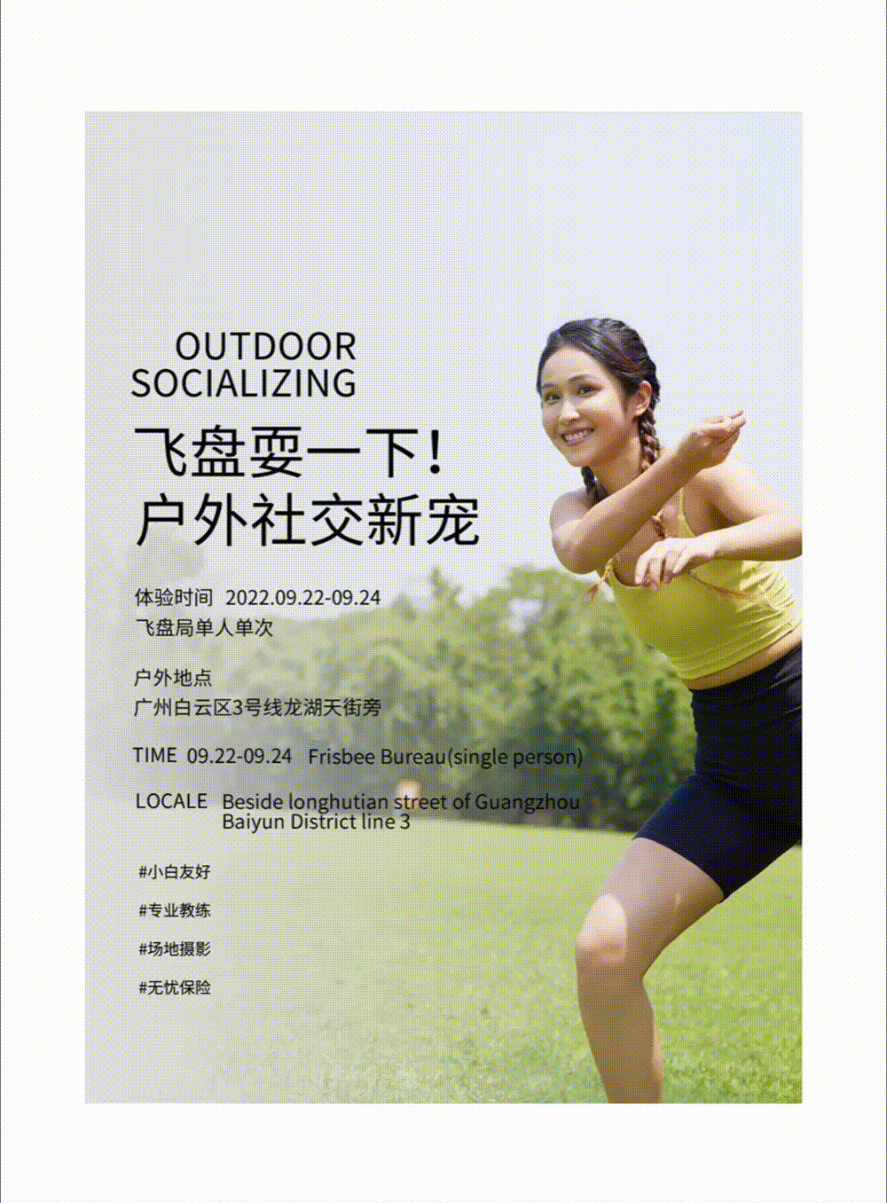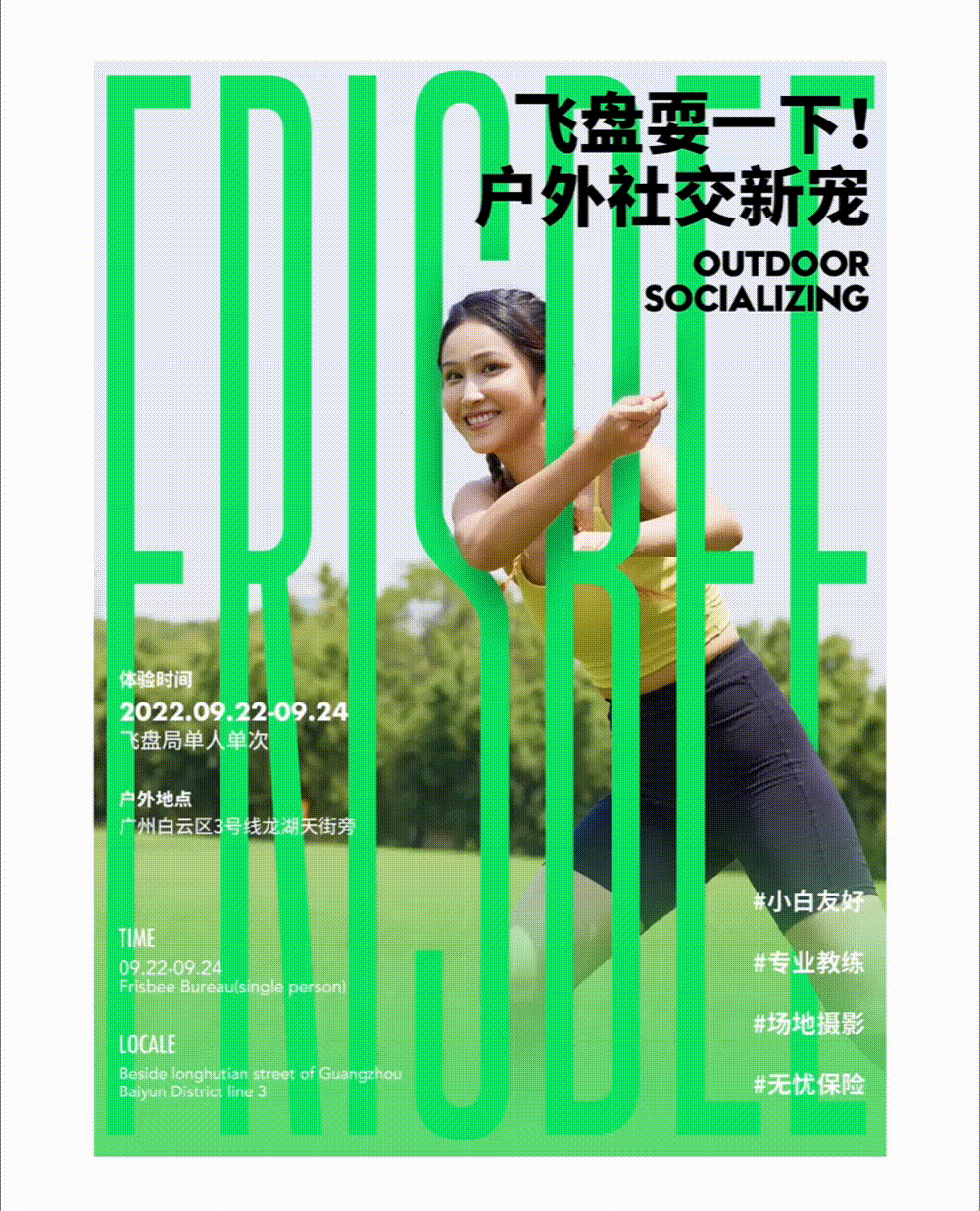將飛盤做出模糊遮擋到英文前方,畫面的層次就被拉開了。