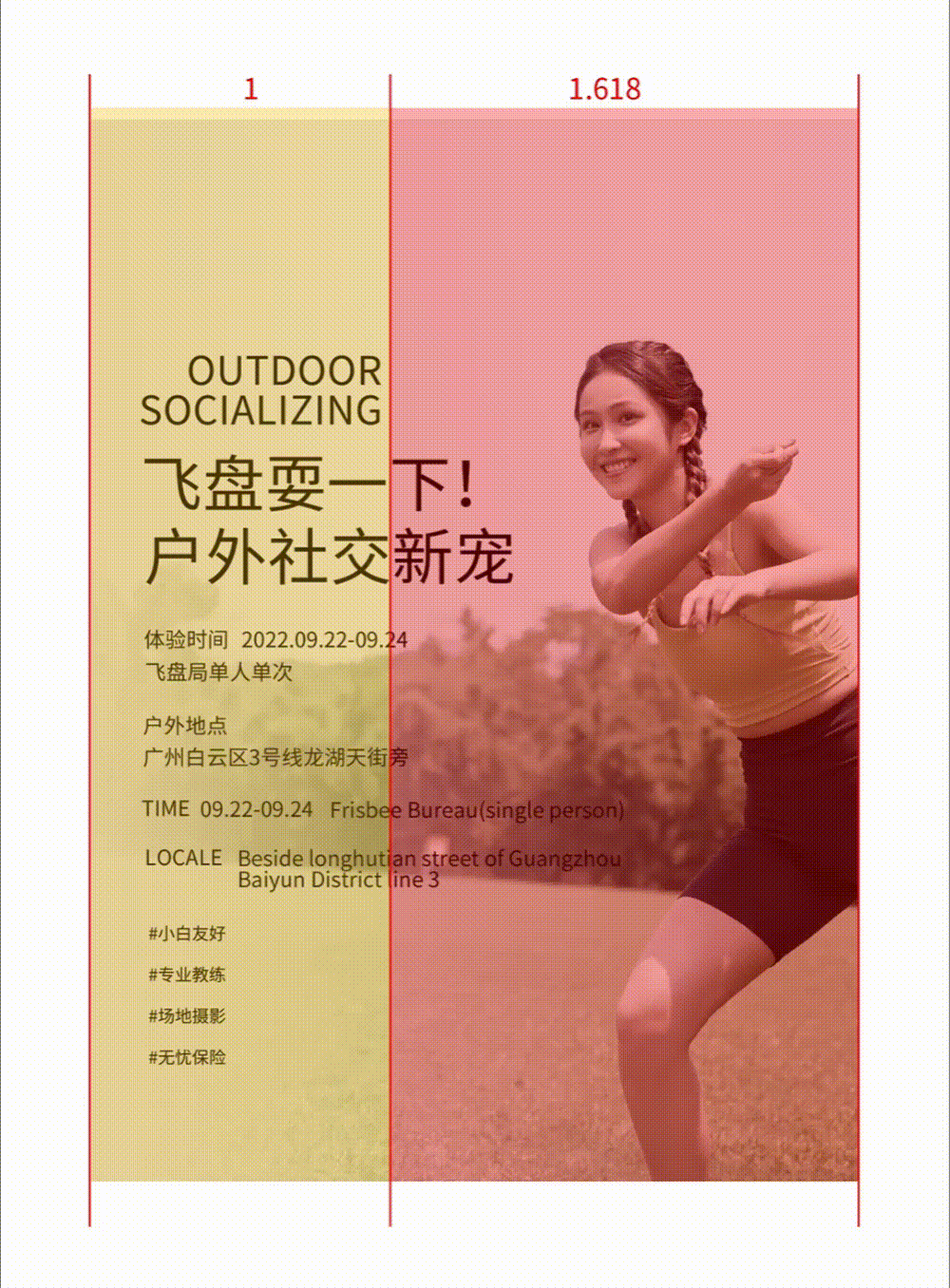 版式的框架分割是一個不錯的方法,繪制1:1.618的黃金分割。