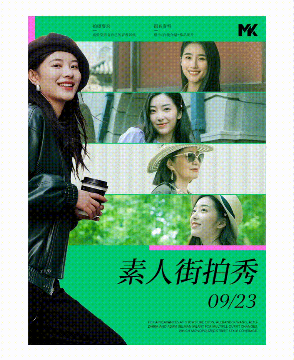 利用英文故意拉滿版面,提升畫面的豐富度,并與人物之間進行交錯,這時英文的作用更多的是起到圖形結合的作用。