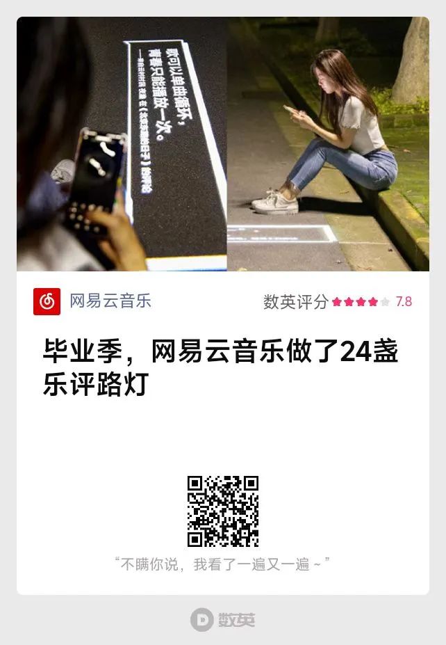 在2021年6月,網易云音樂把樂評放在了復旦大學的校園路燈下。它以路燈為紙,書寫“前路有光”的樂評寄語,讓云村居民的情緒與在校畢業生隔空和鳴,完成一場和用戶深度溝通的畢業儀式。