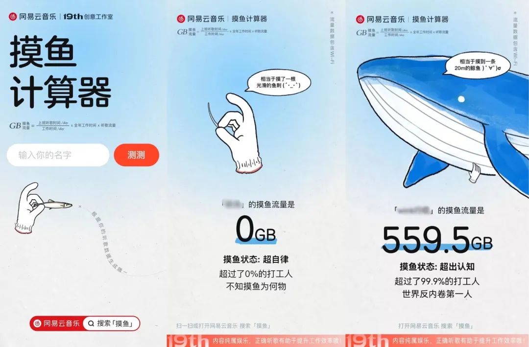 摸魚,是年輕人“反內卷”的默契。趁著“國美批評員工上班摸魚”上熱搜的功夫,網易云音樂連夜趕出“摸魚計算器”,將話題中心轉向自己,選擇站隊年輕人。