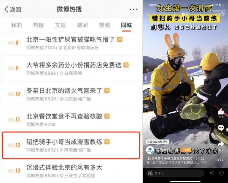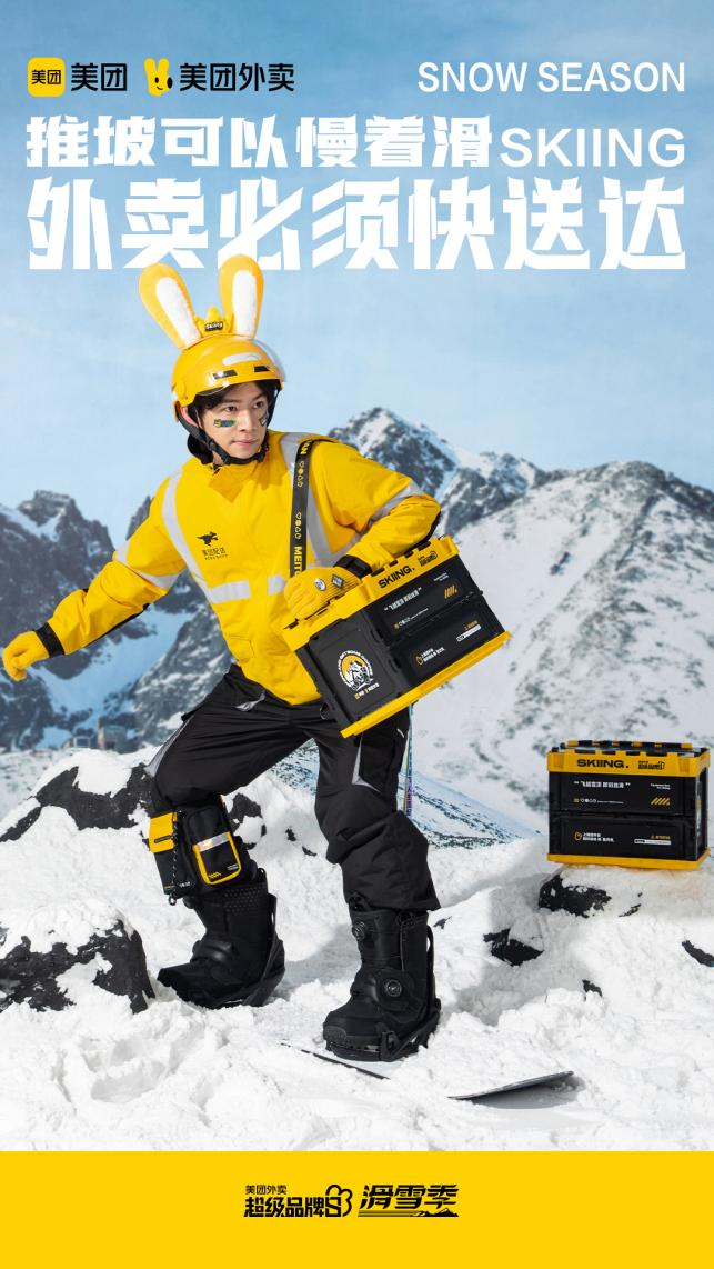 如果你也經常滑雪,或許在雪場見過身著整套裝備的“美團外賣小哥”,看到“騎手”在雪上穿梭的場景,不禁感嘆到:“如果在雪場能隨時隨地喝到一杯熱咖啡”就好了。洞察到興趣營銷的熱度,美團外賣開始了“官方玩梗最為致命”的互動,聯合品牌與年輕人在雪場玩在一起。
