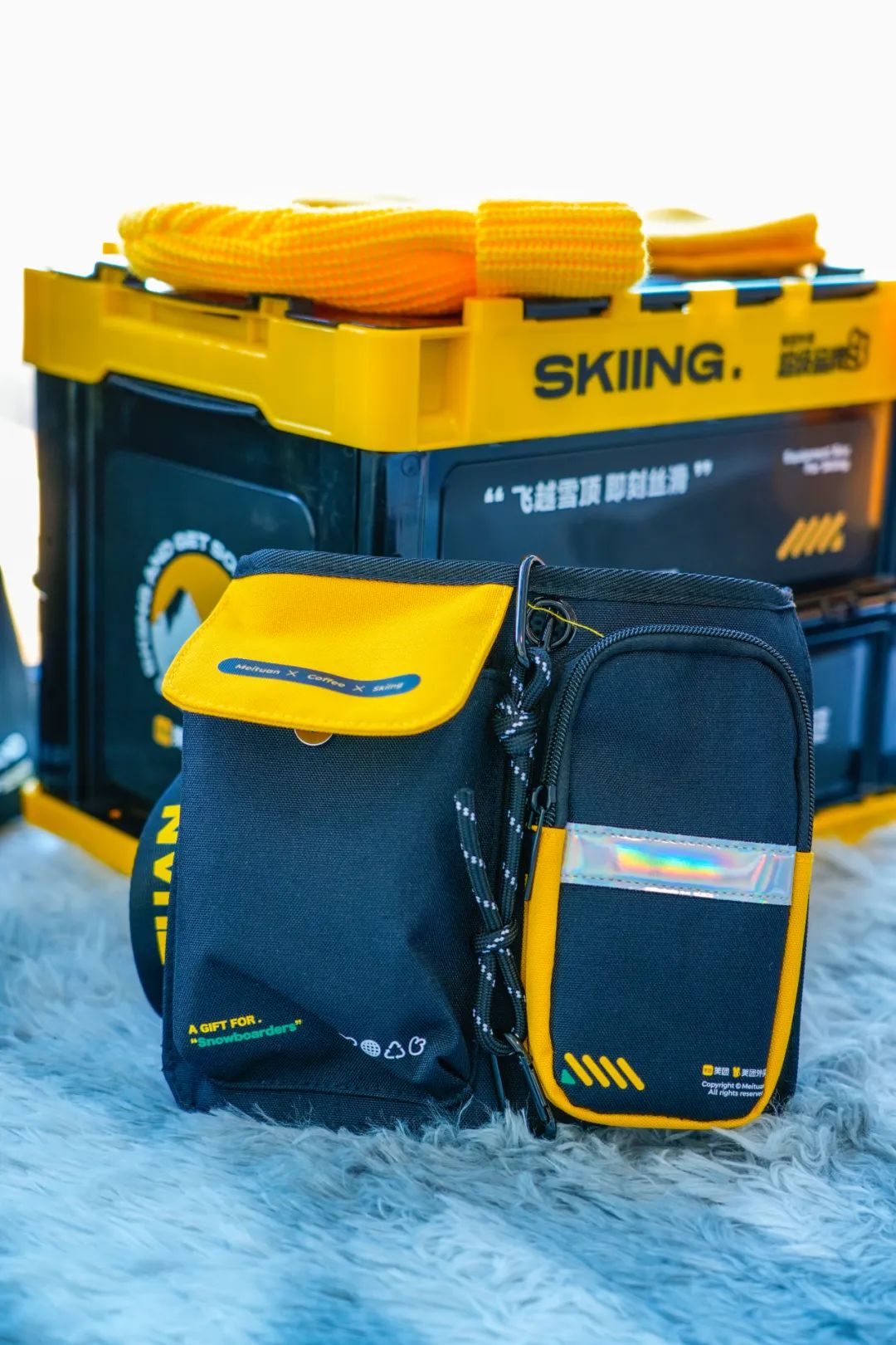 這一次,美團外賣周邊營銷的關鍵詞是“酷”,興趣酷,場景酷,態度酷。整套周邊不乏滑雪元素,兼顧顏值與實用性,運用美團外賣經典黑與黃的配色,點綴具備未來感的鐳射元素,既呼應雪場又增加視覺層次,每個周邊各具功效,在日常場景使用也十分吸睛。
