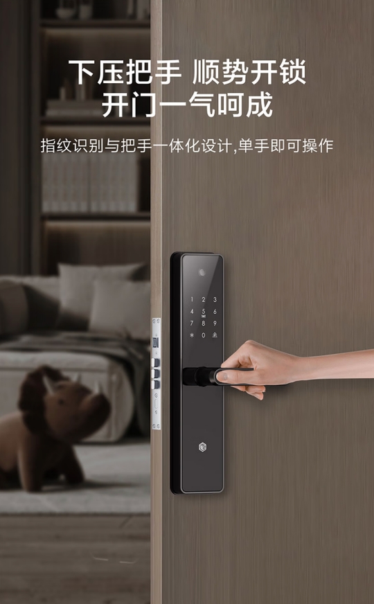 智能家居用品正在“潤物細無聲”地進入人們的生活,尤其是智能門鎖,已成為智能家居生活中非常重要的一環。但傳統的智能門鎖使用路徑較長:“推開擋板——按壓手指——等待門鎖開啟聲音——扳動門把手”這一連串的動作,體驗其實并不好。京東京造設計團隊洞察到這個用戶痛點,將智能門鎖實現了指紋識別與把手的一體化設計,只需握住把手即可完成指紋識別時,順勢下壓把手即可開鎖,一個動作簡單且優雅。此外,京東京造這款智能門鎖還實現了功能集成,將門鎖與可視貓眼結合,可自動抓拍門外異動,還能遠程視頻,隨時隨地掌握門外的各種狀況,提供多重安全保障。