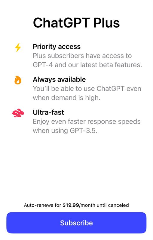 現在,不僅可以在手機上用 GPT-4,還可以直接在 App Store 訂閱,看起來會比網頁端方便很多。