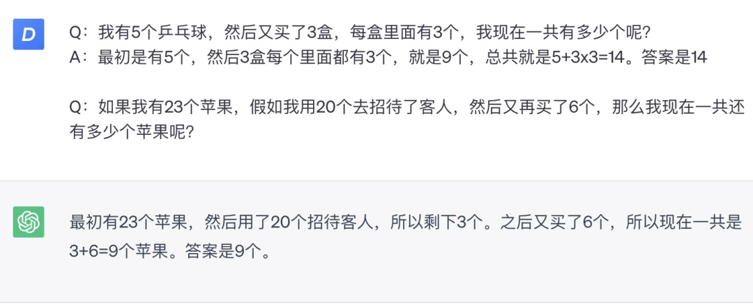 如上面的例子,AI 被我個出的示例來解釋其解決這個數學問題的推理過程,這樣做可以得到更準確的結果。
