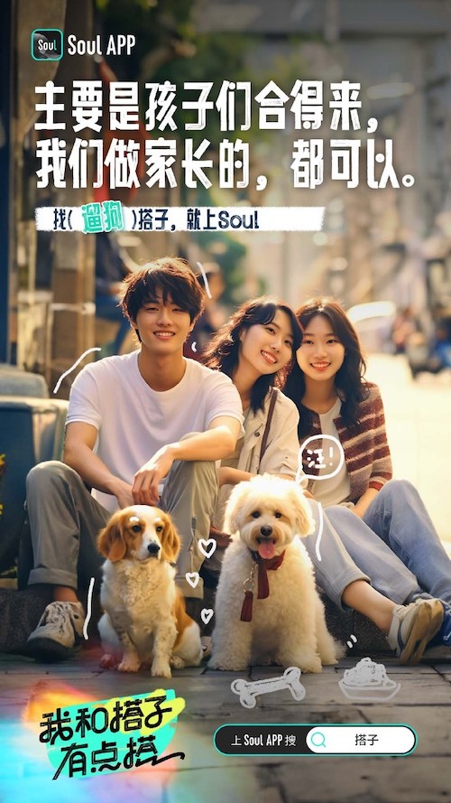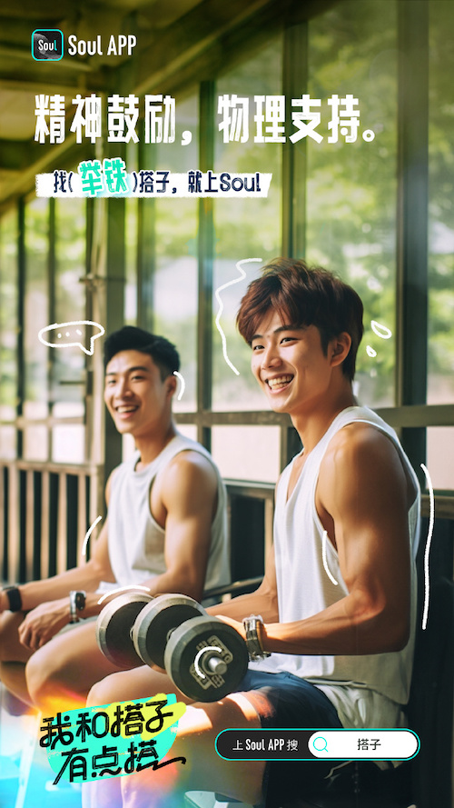 海報細分出包括Live、遛狗、舉鐵在內共8種搭子類型。用戶可在Soul 平臺選擇感興趣的搭子社區。