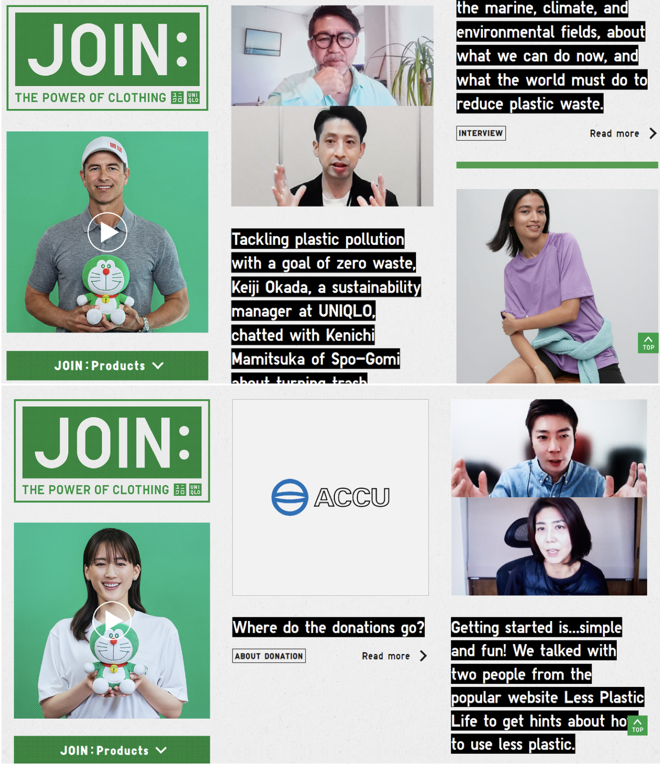 在 2021 年的活動中,與法國政治經濟學家雅克·阿塔利(Jacques Attali)的專題談話時,品牌創始人柳井正就指出「如果不是以個人或者企業的意志開始行動,理應能夠改變的事物也不會得到改變」。這也正是「JOIN」系列活動的意義所在。