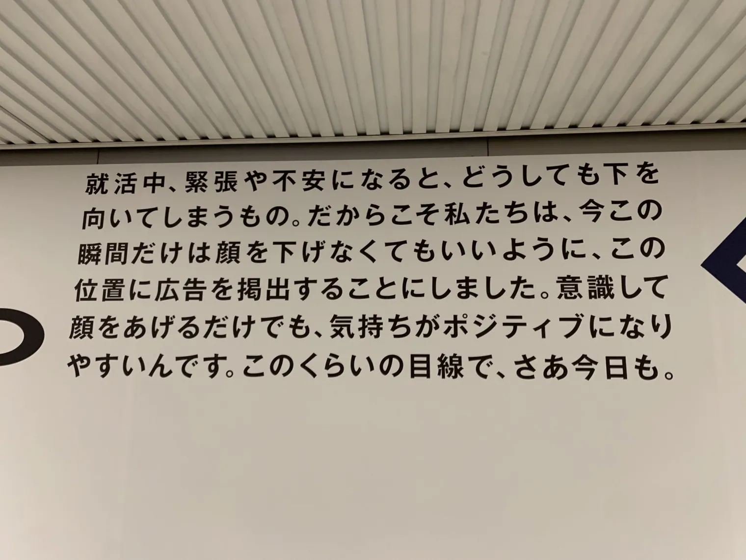 “找工作的時候,如果感到緊張或不安,人們很容易會低下頭。這就是我們為什么要在這里做這個廣告,這樣你就會在此刻抬起頭。只要有意識地抬起頭,心情就會變得積極。這么看來,今天也如此。”
