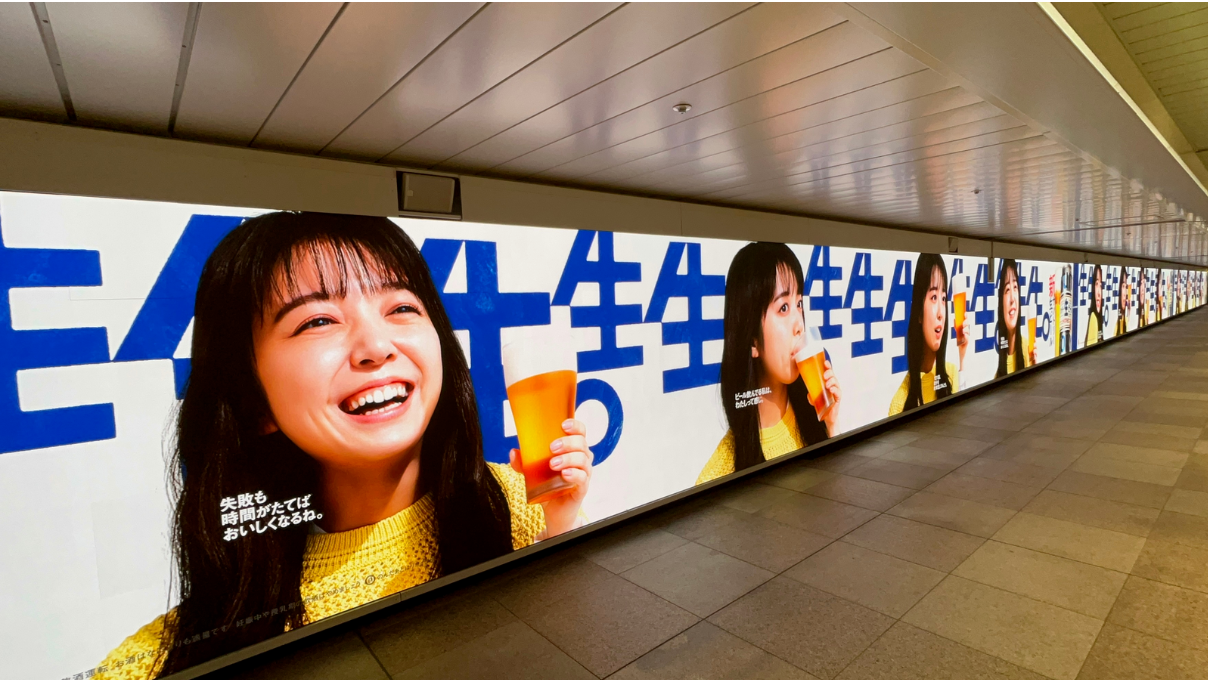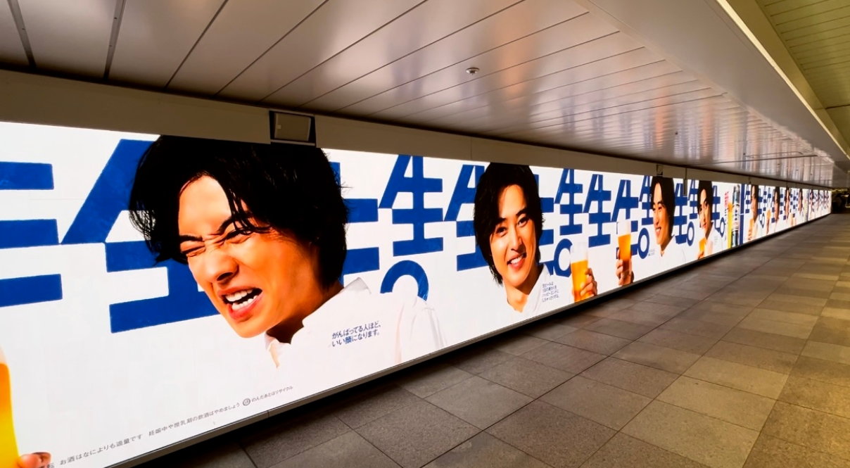 大道至簡得要功夫深,還是簡單粗暴更易學。三得利生啤的一組地鐵站廣告就是后者。