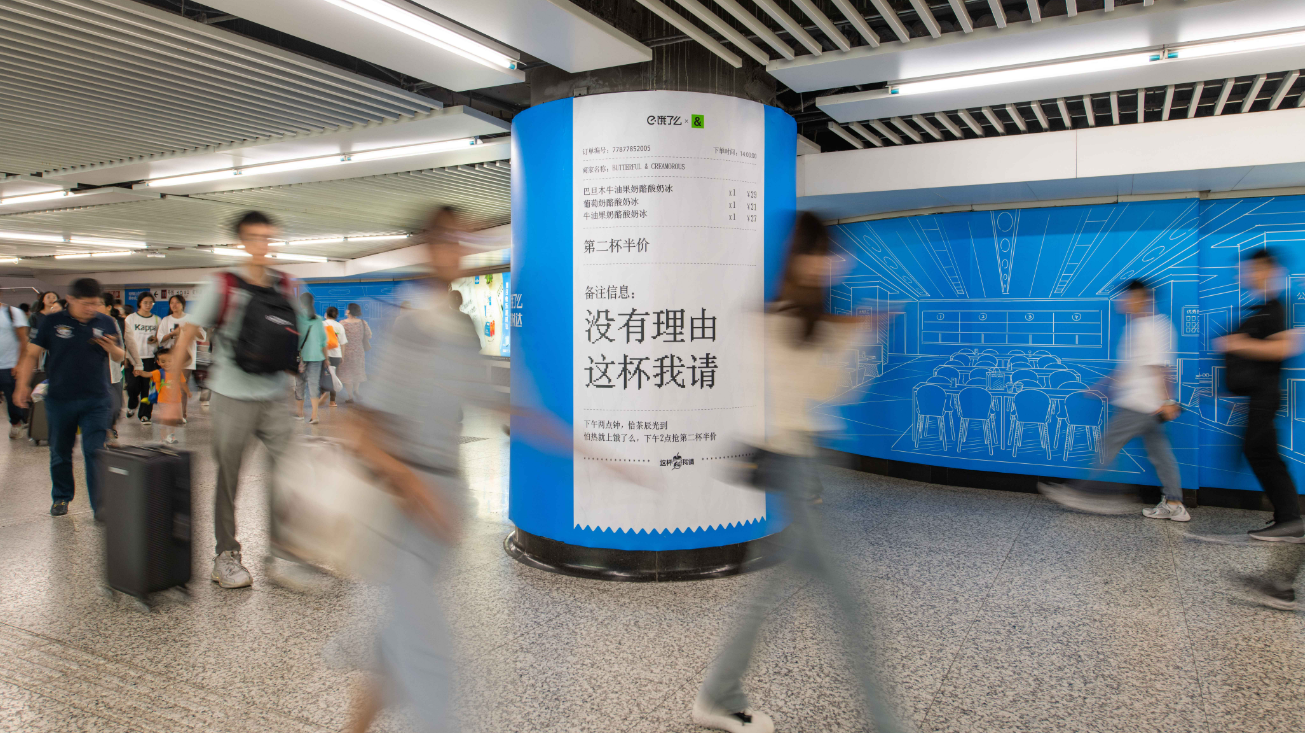 繼去年在上海發起“感謝有你 這杯我請”后,餓了么今年再次豪氣請上海友友喝下午茶,還在打工人濃度超高的徐家匯地鐵站,大肆宣傳自己請客這事兒。好一波精準投放。