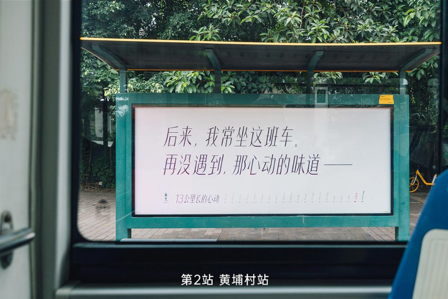 20個站點,20句不同的文案,上演了一場有關發香的“愛情連續劇”。從開頭的“后來,我常坐這班車。再沒遇到,那心動的味道” 到“后來,我常坐這班車,為了那心動的味道”,道出一種小心翼翼又洶涌的愛意,也將阿道夫的味道塑造成了令人心動的香氣。