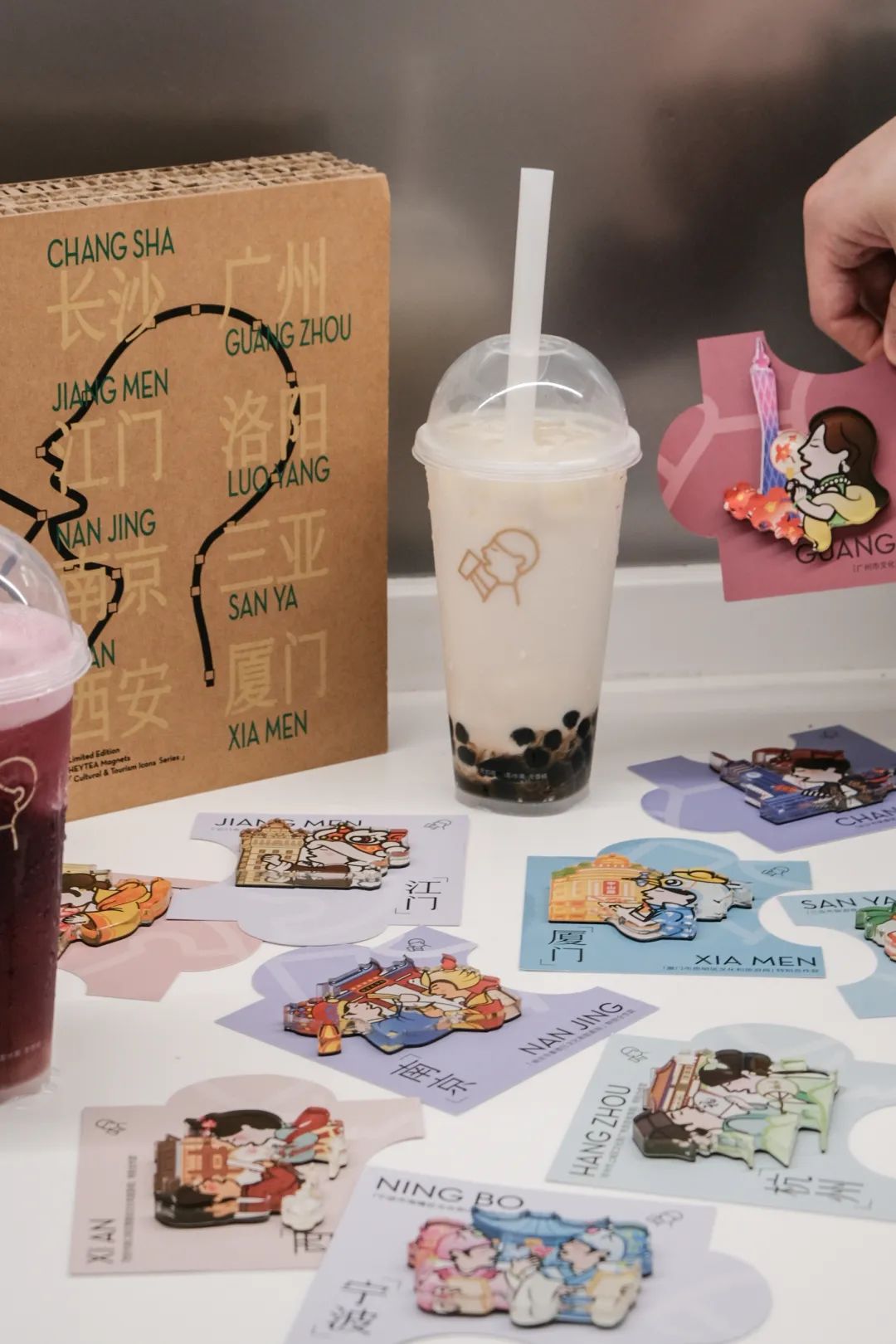 2023 年的五一假期,喜茶聯合了十一地的文旅部門推出了「城市文旅」限定冰箱貼,讓用戶感受「假期之喜」。