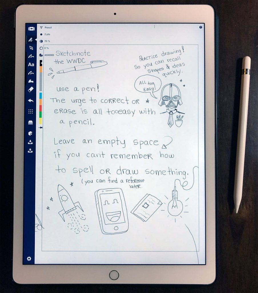 Andy McNally 提到,在這個草圖中,他只是要表達自己的想法而不是描繪一個現場時間,當然,在創作的過程中,他還能使用到 iPad Pro ,對于使用 iPad Pro 來畫畫,相信很多朋友應該都不陌生了。